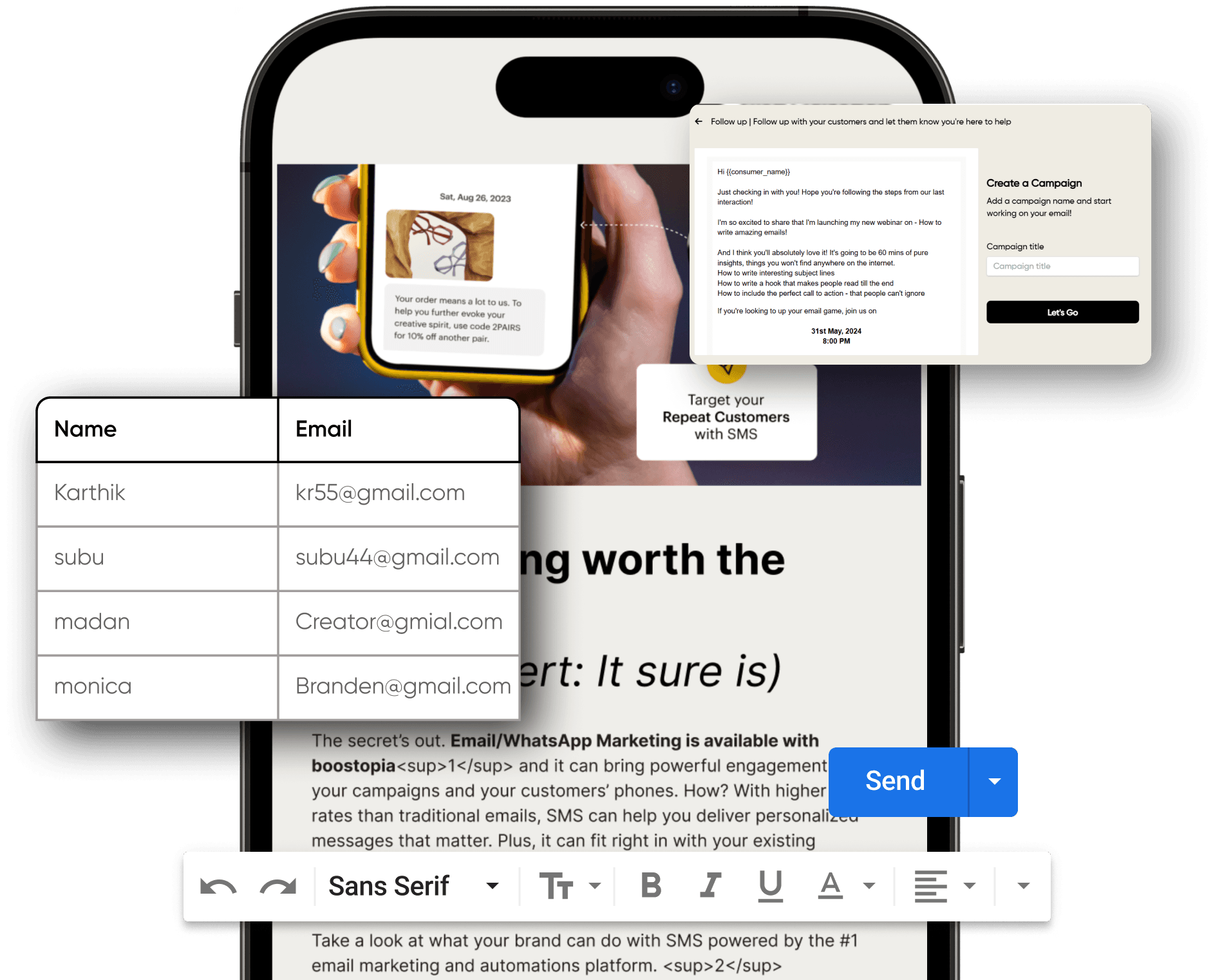 Boost your earnings with our powerful automated funnels made for Email and WhatsApp marketing. Create and send custom messages and emails.